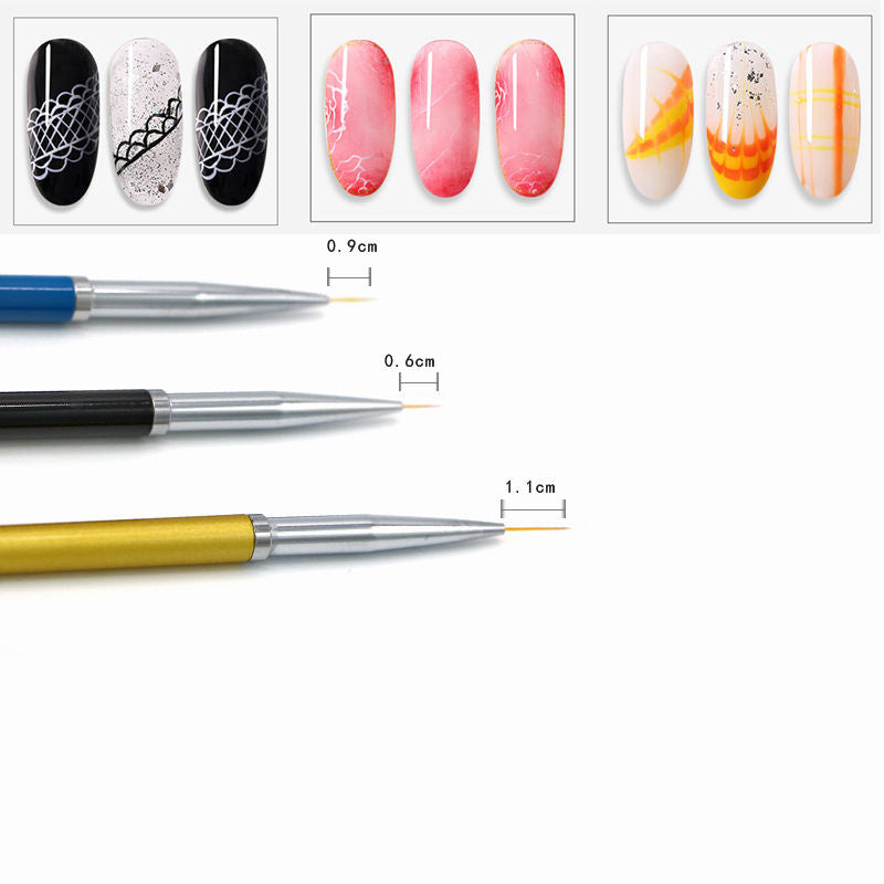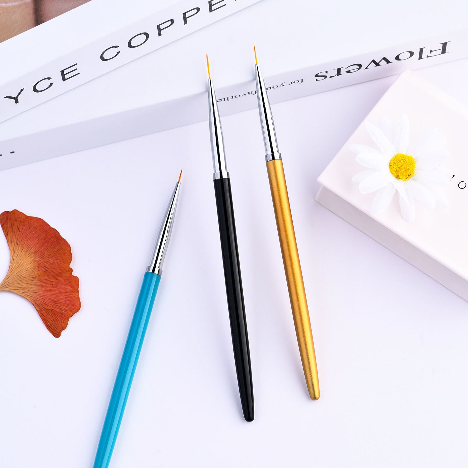 This 3-piece Liner/Art Brush Set is perfect for creating precise and detailed nail art designs. Each brush features ultra-fine, flexible bristles for smooth strokes and effortless control. The lightweight, ergonomic handles ensure a comfortable grip, making them ideal for both professionals and beginners. Suitable for fine lines, intricate patterns, and detailed artwork, these brushes work beautifully with gel, polish, or acrylic paints to achieve flawless, salon-quality nail designs. Art Brush, Liner Brush, Detailing Brush