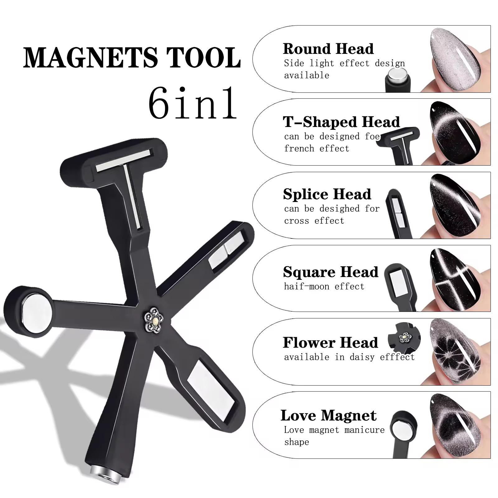 The 6in1 Cat Eye Magnet is a versatile tool that allows you to create multiple magnetic effects with just one magnet. Featuring five different magnetic heads, it gives you the flexibility to experiment with various patterns, including lines, swirls, and cat-eye designs, all with stunning depth and dimension. Perfect for gel polish enthusiasts, this tool is ideal for creating unique, eye-catching nail art with ease. A must-have for both beginners and professionals looking to elevate their nail designs.
