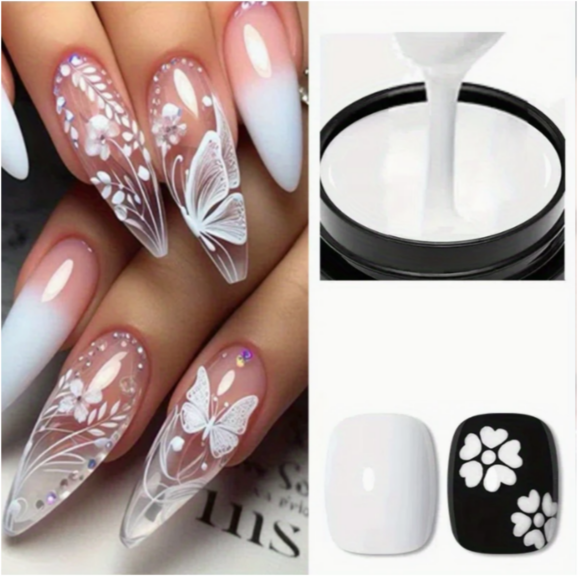The Black & White Painting Gel for Nails is perfect for creating precise nail art, intricate designs, and bold patterns. With a smooth, creamy texture, this highly pigmented gel delivers excellent coverage and control. Ideal for both beginners and professionals, it cures under UV/LED lamps for a long-lasting, smudge-free finish. Whether you’re crafting classic monochrome looks or detailed art, this duo is a must-have in your nail design kit.
