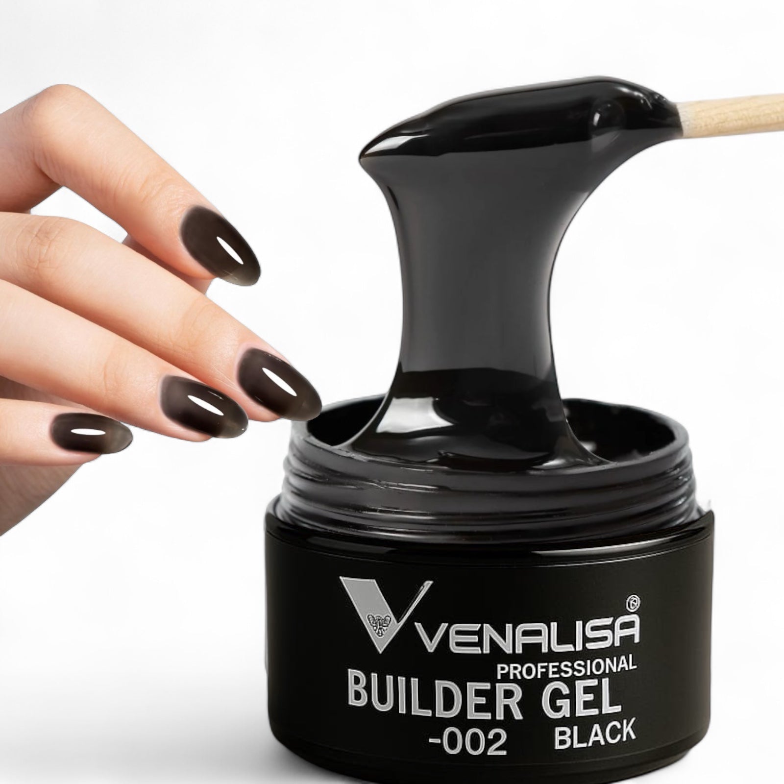 Venalisa Builder Gel Black (15ml) is a strong, versatile builder gel that combines durability with a bold, striking black finish. Ideal for nail extensions, overlays, or creative nail art bases, it provides superior adhesion and long-lasting wear without lifting. Its smooth consistency allows easy application and precise shaping. Perfect for professionals, this gel cures under UV/LED lamps, ensuring salon-quality results with a glossy, dramatic look that makes nails stand out.